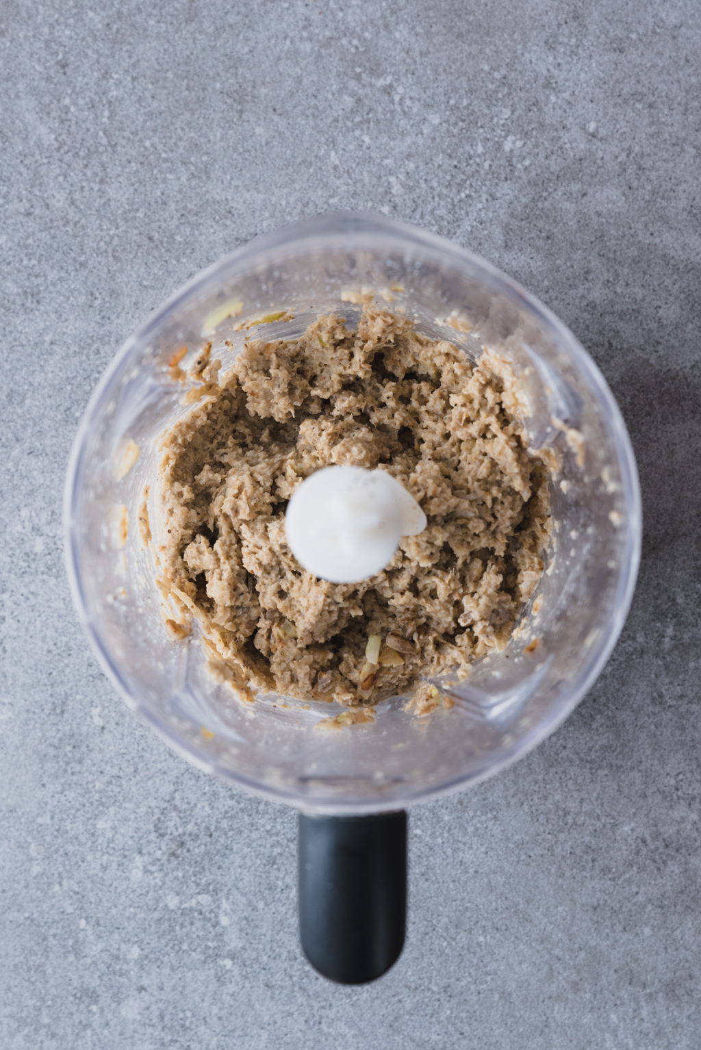 - Gebe das ganze in einen Mixbehälter und füge Zitronensaft, Tahin, 1/4 TL Kreuzkümmel, Salz und Pfeffer hinzu. Püriere das ganze bis eine Art Pesto entstanden ist und stelle es beiseite.