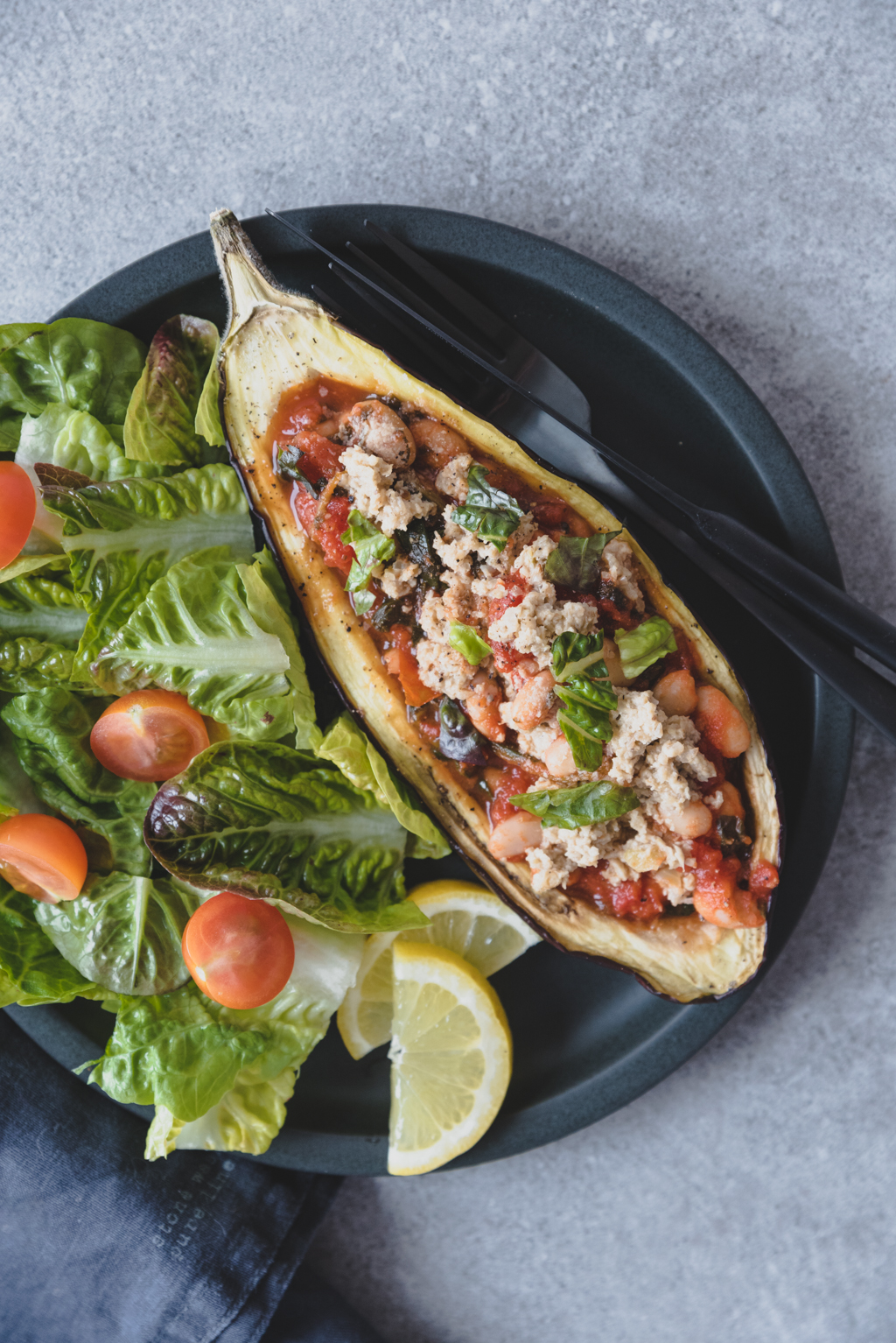 Gefüllte Aubergine mit weißen Bohnen